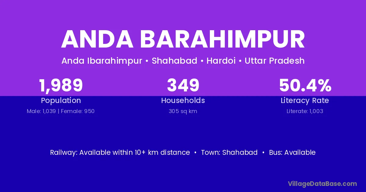 Anda Barahimpur village has a total population of 1,989 people, of which 1,039 are males and 950 are females.
