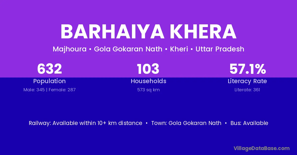 Barhaiya Khera village has a total population of 378 people, of which 207 are males and 171 are females.