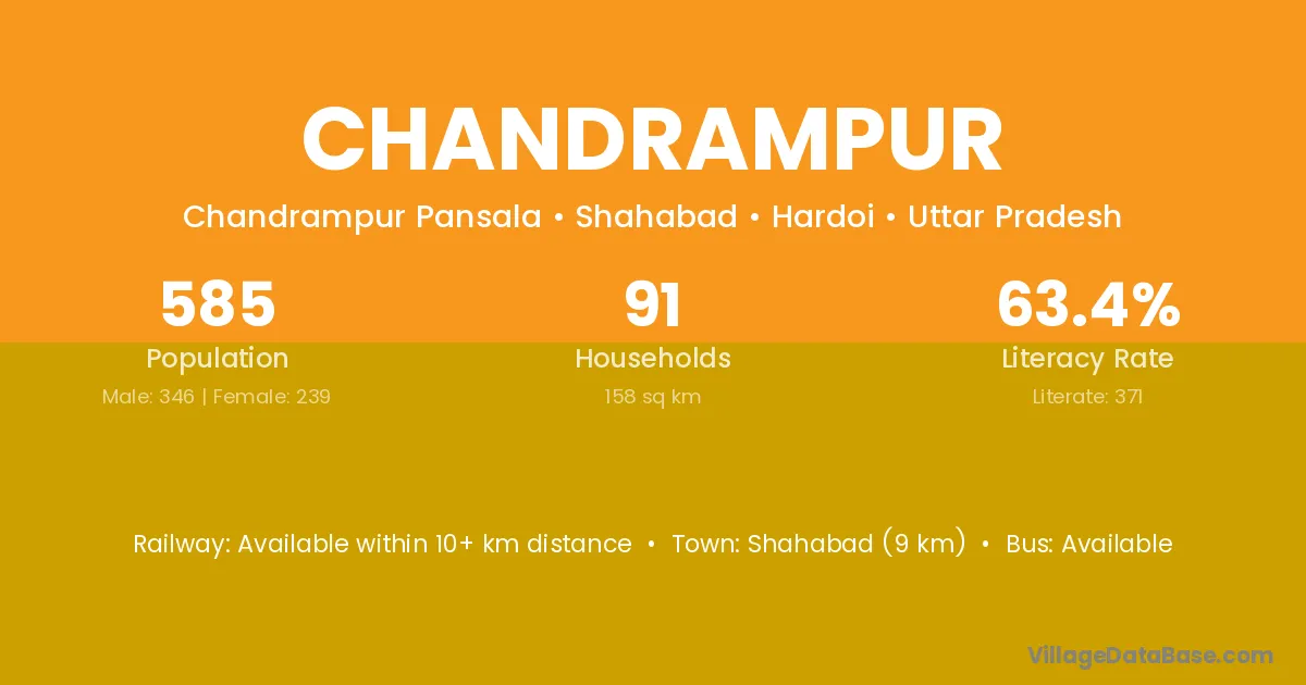 Shahabad (9 km) is the nearest town to Chandrampur village for major economic activities and is located approximately 9 km away.
