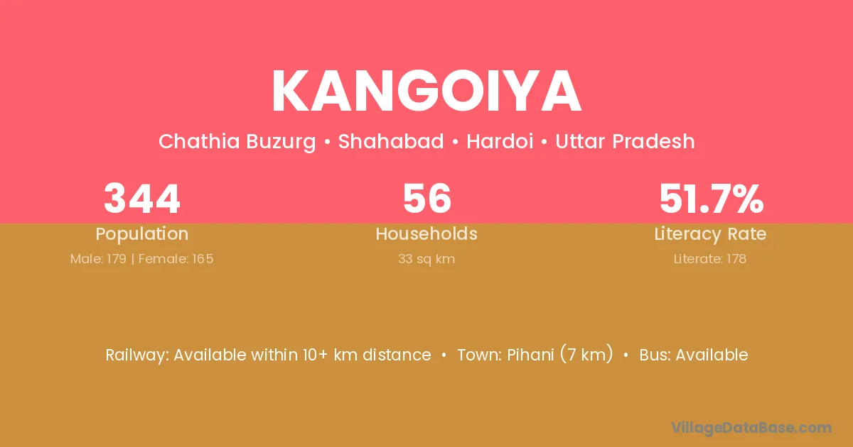 Pihani (7 km) is the nearest town to Kangoiya village for major economic activities and is located approximately 7 km away.