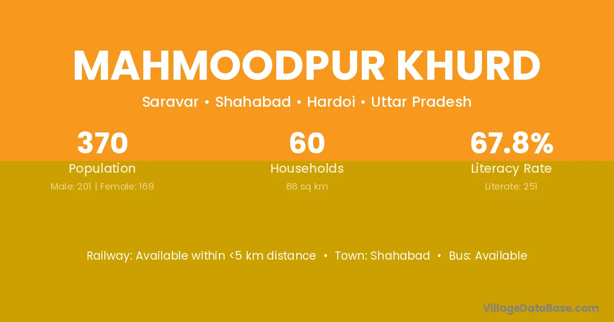Mahmoodpur Khurd village has a total population of 370 people, of which 201 are males and 169 are females.