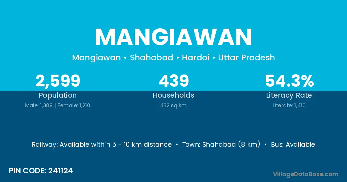 Shahabad (8 km) is the nearest town to Mangiawan village for major economic activities and is located approximately 8 km away.