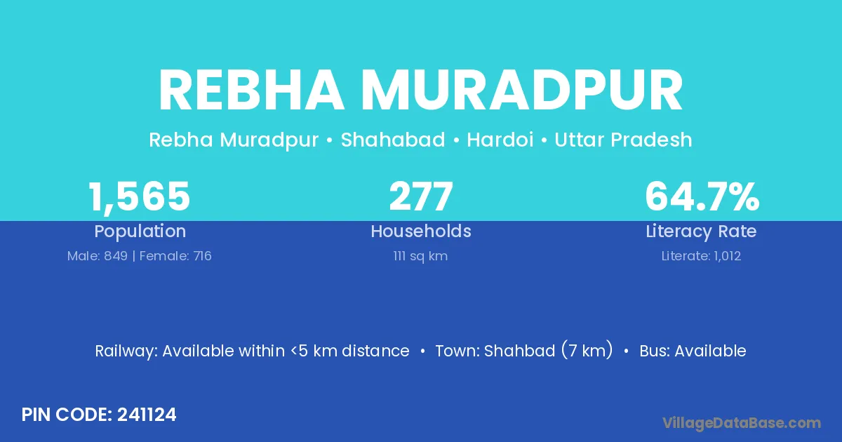 Shahbad (7 km) is the nearest town to Rebha Muradpur village for major economic activities and is located approximately 7 km away.