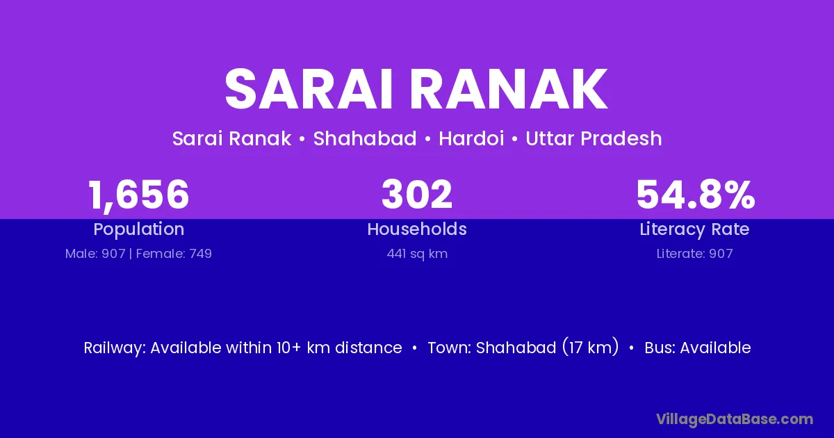 Sarai Ranak village has a total population of 1,656 people, of which 907 are males and 749 are females.