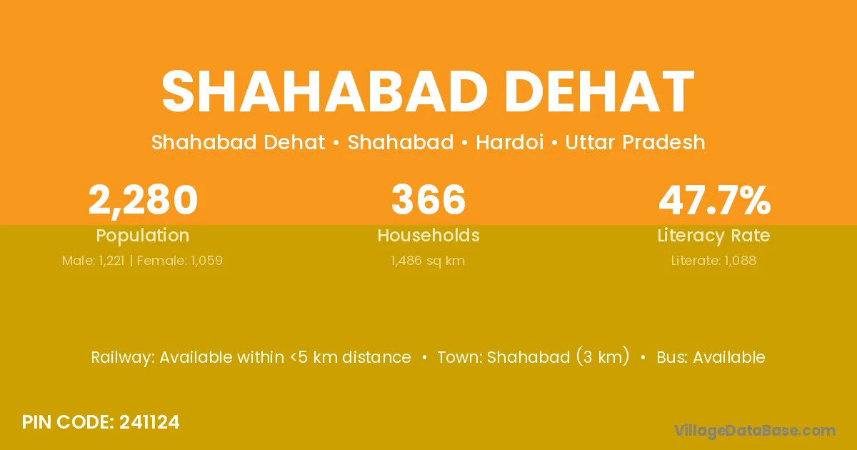 Shahabad (3 km) is the nearest town to Shahabad Dehat village for major economic activities and is located approximately 3 km away.