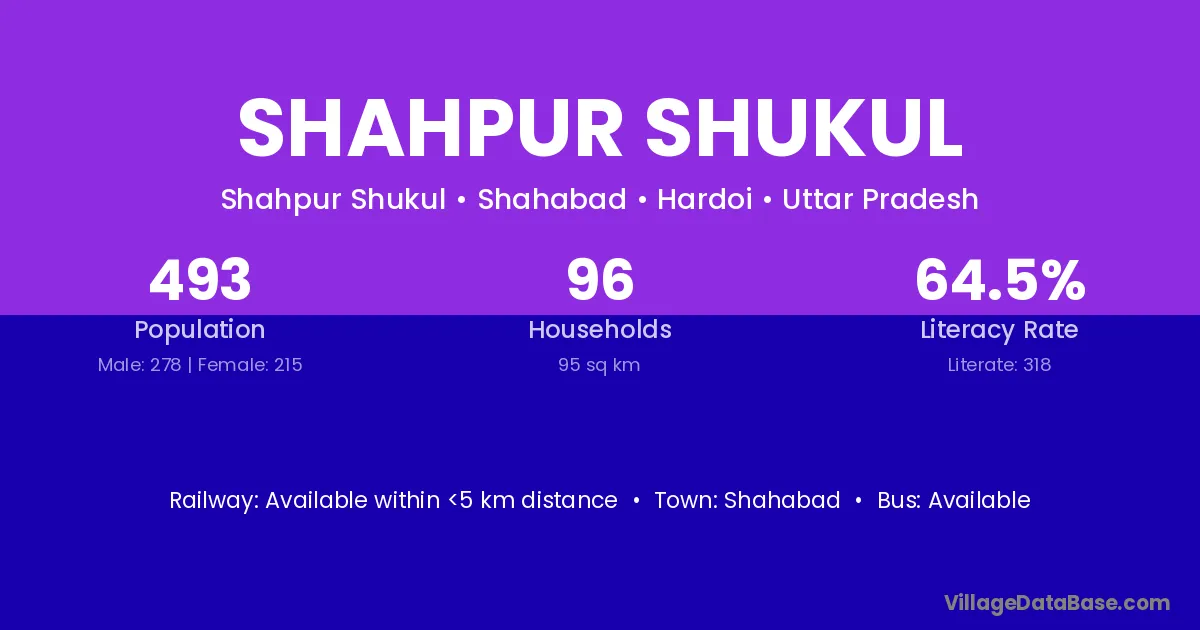 Shahpur Shukul village has a total population of 493 people, of which 278 are males and 215 are females.