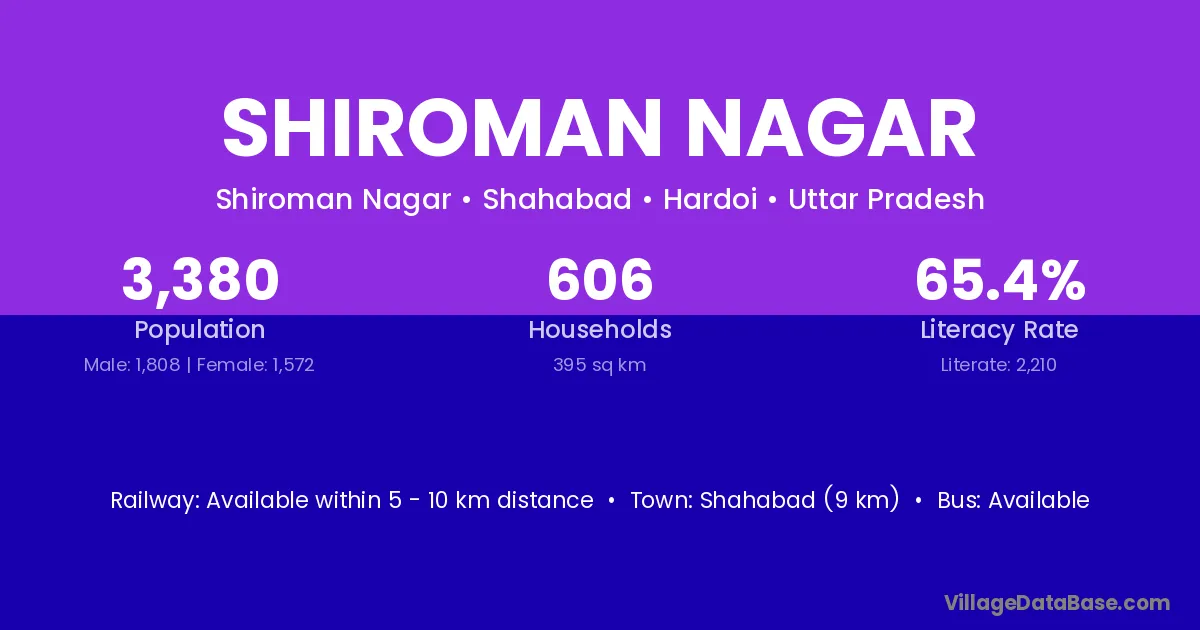 Shahabad (9 km) is the nearest town to Shiroman Nagar village for major economic activities and is located approximately 9 km away.
