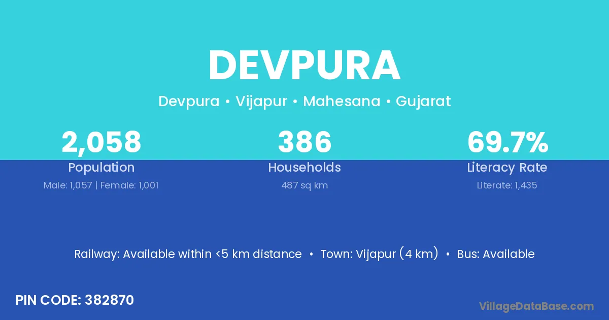 The literacy rate of Devpura village is 70.21%. Male literacy stands at 78.33% and female literacy at 60.48%.