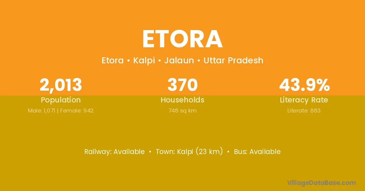 Kalpi (23 km) is the nearest town to Etora village for major economic activities and is located approximately 23 km away.