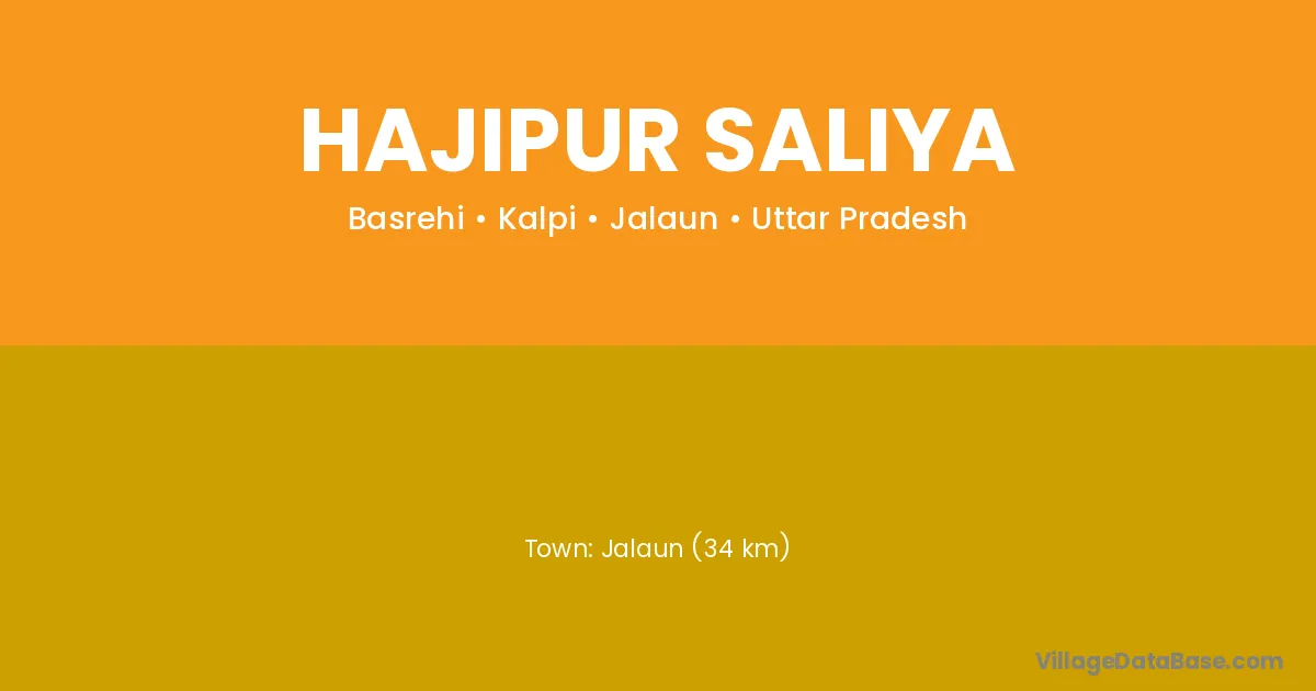 Jalaun (34 km) is the nearest town to Hajipur Saliya village for major economic activities and is located approximately 34 km away.