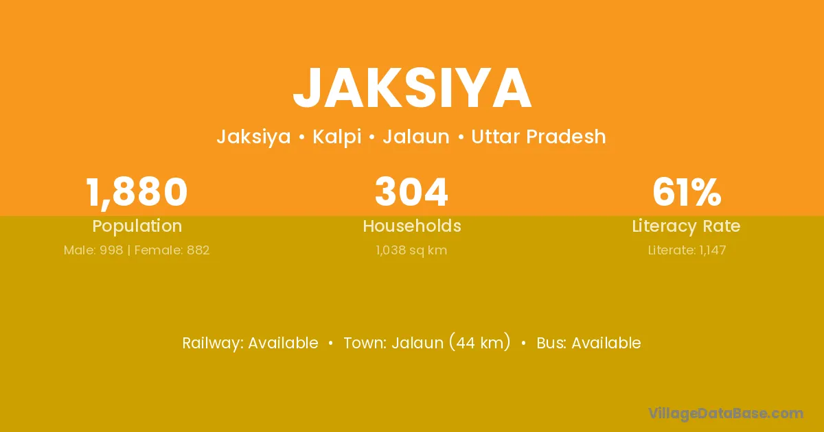 Jalaun (44 km) is the nearest town to Jaksiya village for major economic activities and is located approximately 44 km away.
