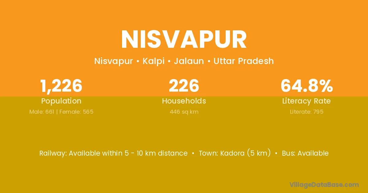 Nisvapur village has a total population of 1,226 people, of which 661 are males and 565 are females.