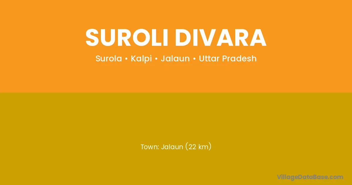 Jalaun (22 km) is the nearest town to Suroli Divara village for major economic activities and is located approximately 22 km away.