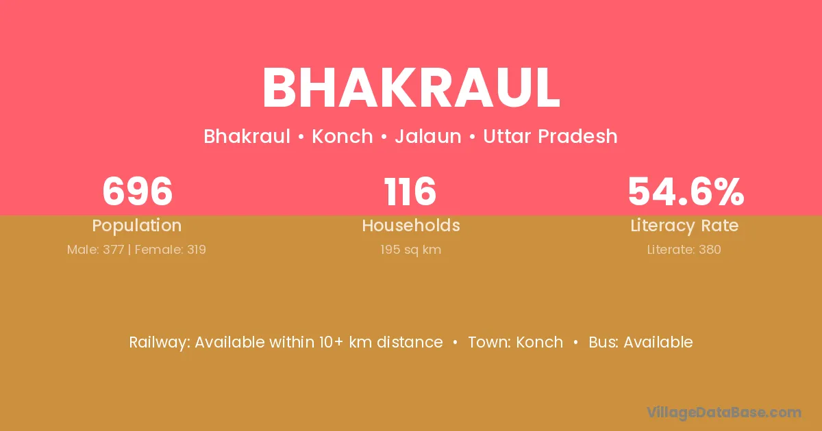 Bhakraul village has a total population of 696 people, of which 377 are males and 319 are females.