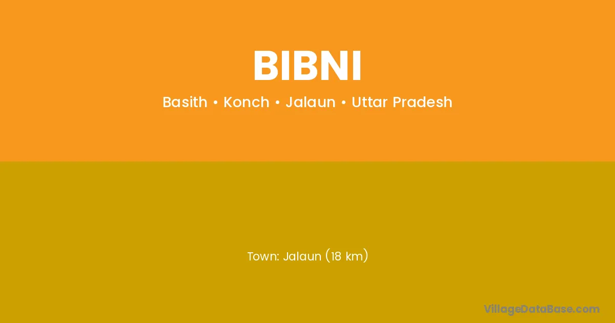 Jalaun (18 km) is the nearest town to Bibni village for major economic activities and is located approximately 18 km away.