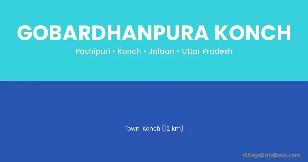 Konch (12 km) is the nearest town to Gobardhanpura Konch village for major economic activities and is located approximately 12 km away.