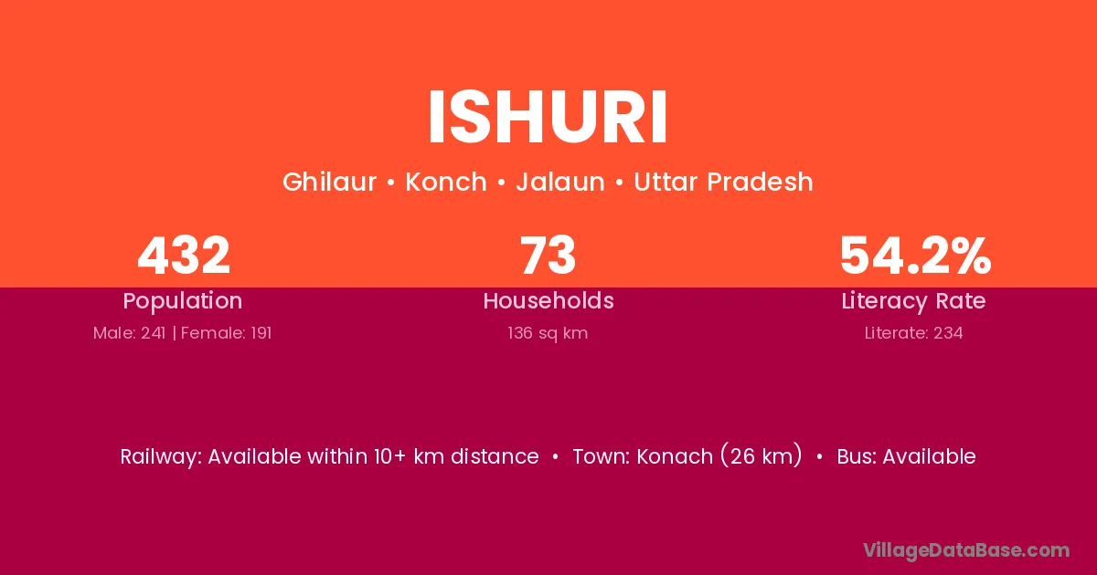 Ishuri village has a total population of 432 people, of which 241 are males and 191 are females.