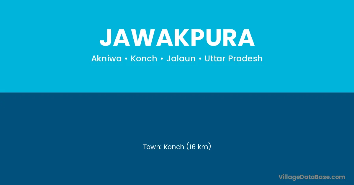 Konch (16 km) is the nearest town to Jawakpura village for major economic activities and is located approximately 16 km away.