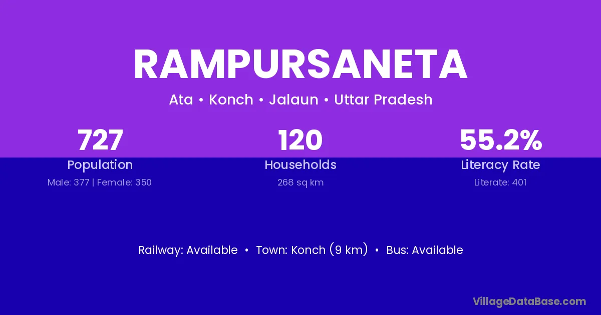 Rampursaneta village has a total population of 727 people, of which 377 are males and 350 are females.