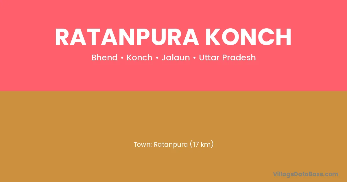 Ratanpura (17 km) is the nearest town to Ratanpura Konch village for major economic activities and is located approximately 17 km away.