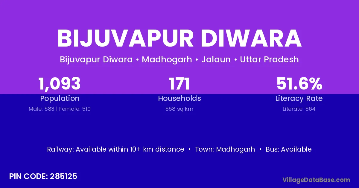 Bijuvapur Diwara village has a total population of 1,093 people, of which 583 are males and 510 are females.