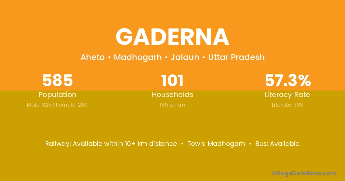 Madhogarh is the nearest town to Gaderna village for major economic activities
