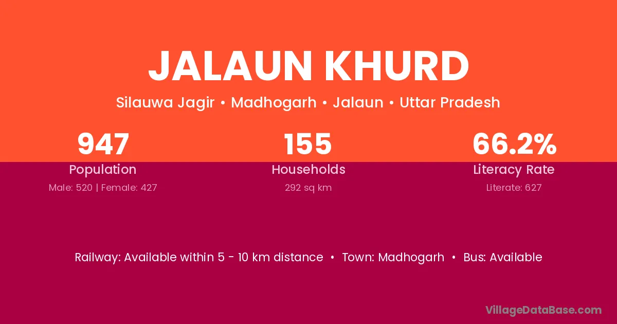 Jalaun Khurd village has a total population of 947 people, of which 520 are males and 427 are females.