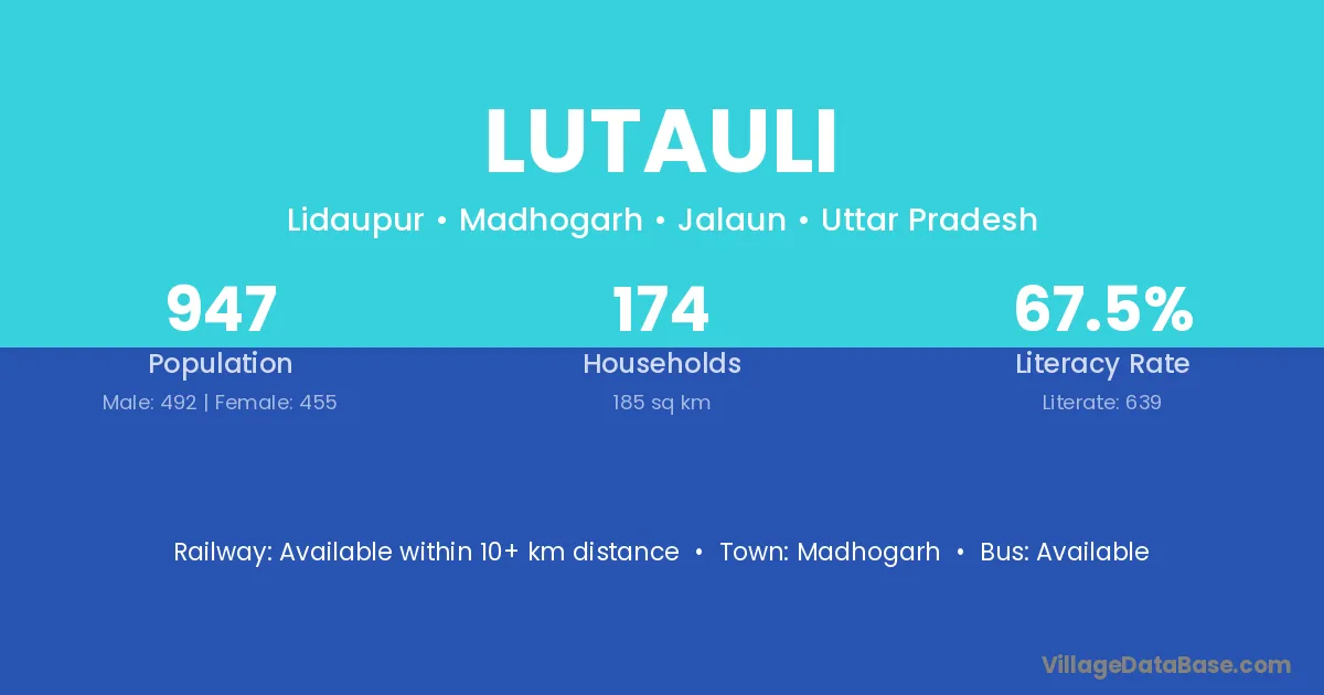 Lutauli village has a total population of 947 people, of which 492 are males and 455 are females.
