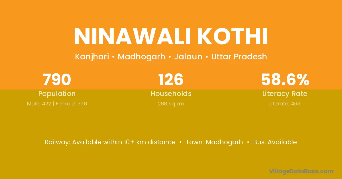 Ninawali Kothi village has a total population of 790 people, of which 422 are males and 368 are females.