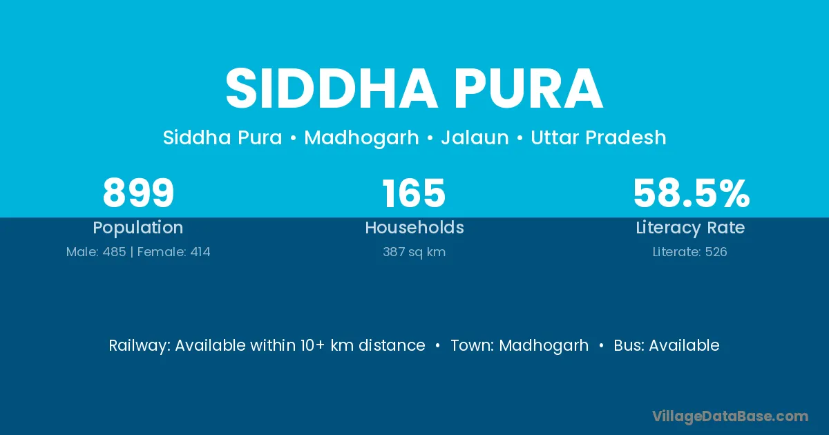 Siddha Pura village has a total population of 899 people, of which 485 are males and 414 are females.