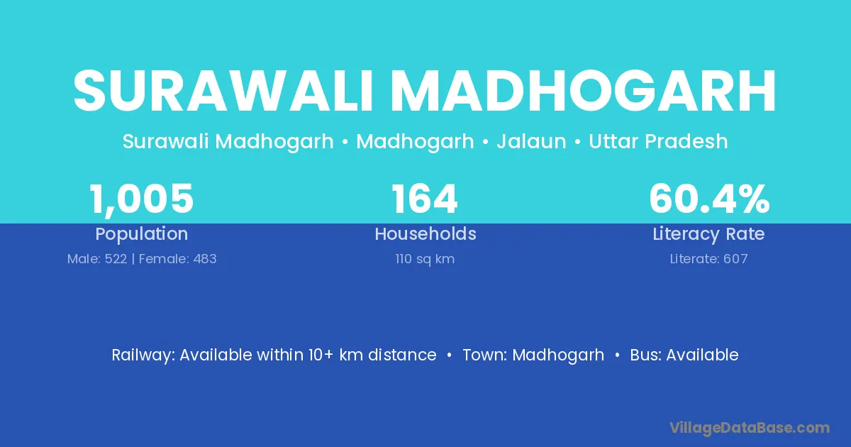 Surawali Madhogarh village has a total population of 1,005 people, of which 522 are males and 483 are females.