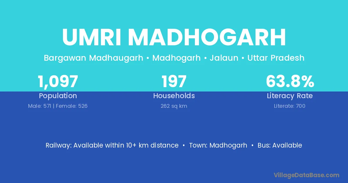 There are approximately 197 households in Umri Madhogarh village.