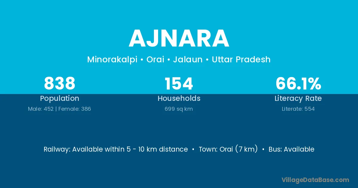 Orai (7 km) is the nearest town to Ajnara village for major economic activities and is located approximately 7 km away.