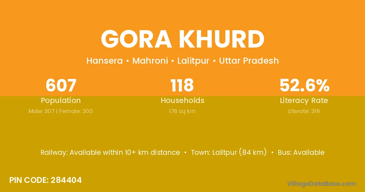 Gora Khurd village has a total population of 193 people, of which 104 are males and 89 are females.
