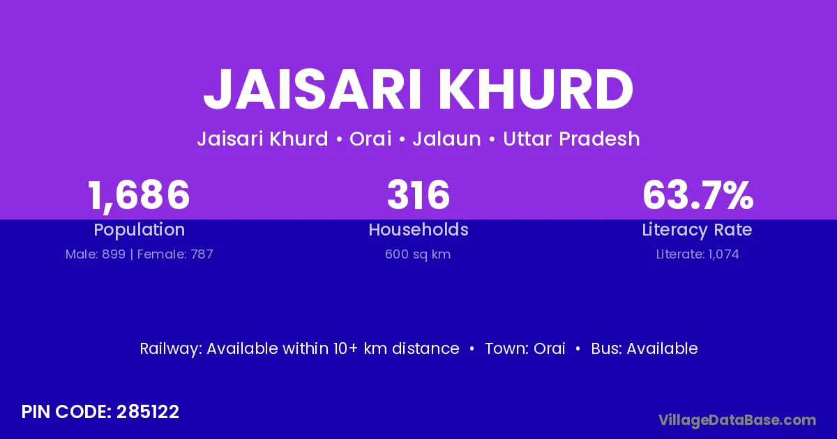 Orai is the nearest town to Jaisari Khurd village for major economic activities