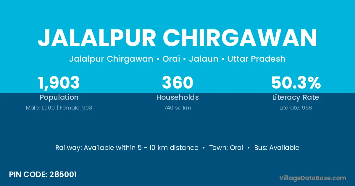 Jalalpur Chirgawan village has a total population of 1,903 people, of which 1,000 are males and 903 are females.