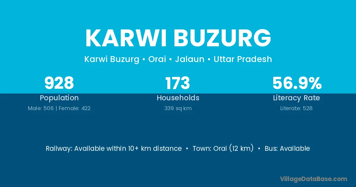 Orai (12 km) is the nearest town to Karwi Buzurg village for major economic activities and is located approximately 12 km away.