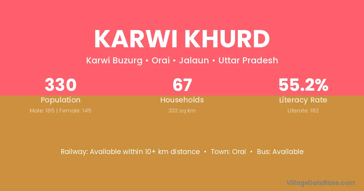 Karwi Khurd village has a total population of 330 people, of which 185 are males and 145 are females.