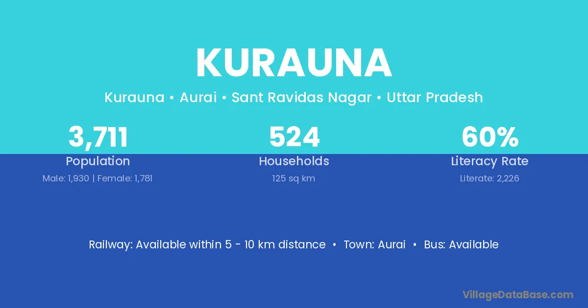 The literacy rate of Kurauna village is 24.88%. Male literacy stands at 31.90% and female literacy at 17.09%.