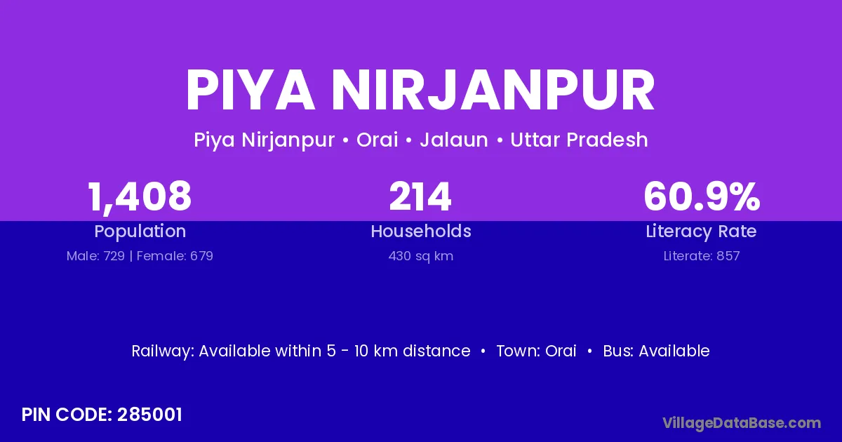 Orai is the nearest town to Piya Nirjanpur village for major economic activities