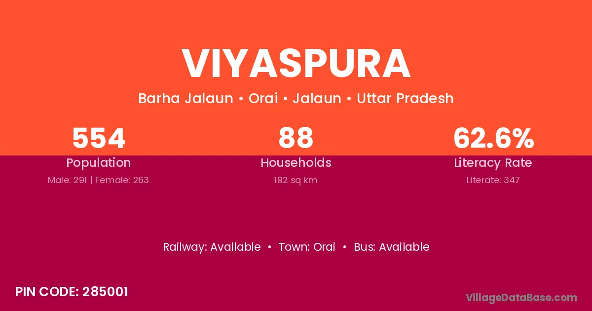 Orai is the nearest town to Viyaspura village for major economic activities