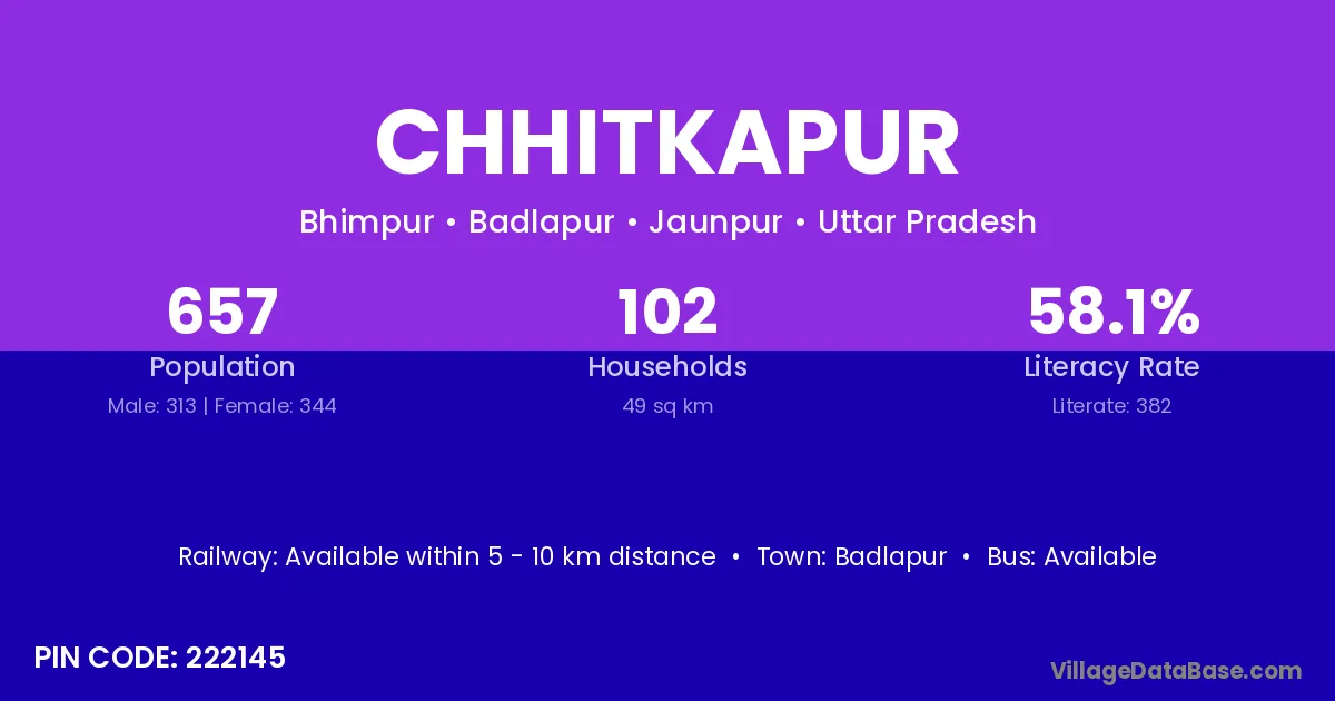According to Census 2011 information, the village code of Chhitkapur village is 222145.