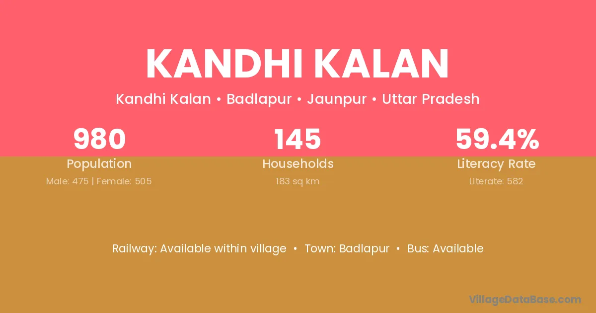 Kandhi Kalan village has a total population of 980 people, of which 475 are males and 505 are females.