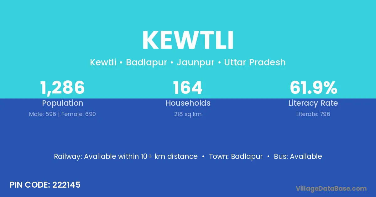 Kewtli village has a total population of 1,286 people, of which 596 are males and 690 are females.