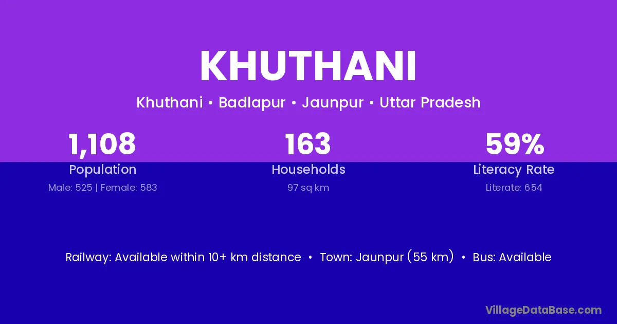 Jaunpur (55 km) is the nearest town to Khuthani village for major economic activities and is located approximately 55 km away.