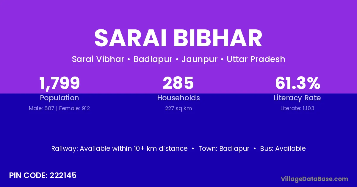 Badlapur is the nearest town to Sarai Bibhar village for major economic activities