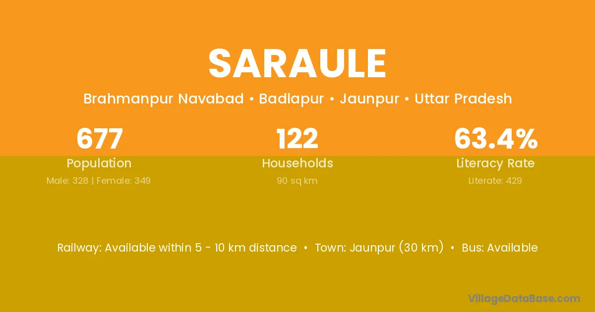 Jaunpur (30 km) is the nearest town to Saraule village for major economic activities and is located approximately 30 km away.