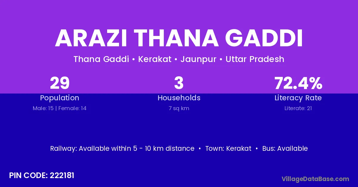Kerakat is the nearest town to Arazi Thana Gaddi village for major economic activities