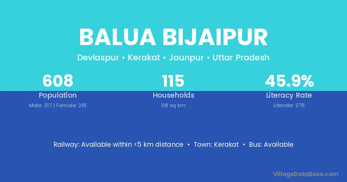 Balua Bijaipur village has a total population of 608 people, of which 317 are males and 291 are females.