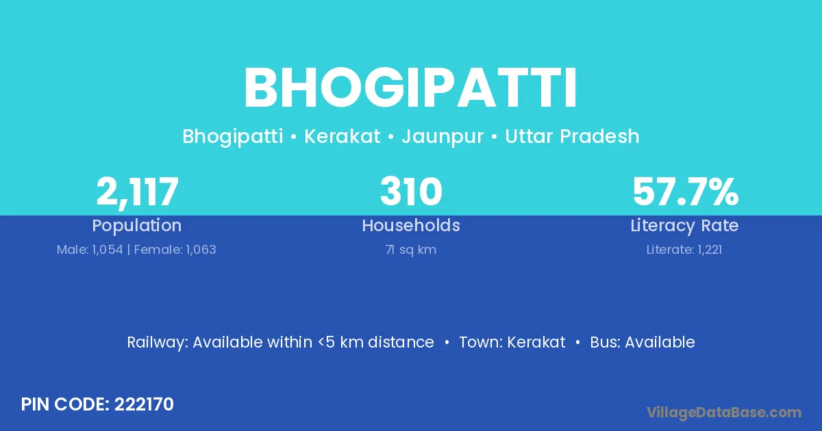 Kerakat is the nearest town to Bhogipatti village for major economic activities